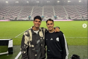 阿尔卡拉斯日前在美国参加阳光双赛,他都未能夺冠,这位西班牙球手在社媒晒出多张近期动态,他与迈阿密国际球员雷吉隆合影,还观看了迈阿密国际的比赛。另外,阿尔卡拉斯观看了湖人比赛,并与湖人球星东契奇拥抱。