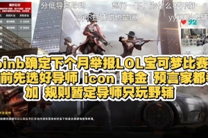 doinb:目前先选好导师icon、韩金、预言家都参加,规则暂定导师只玩野辅。