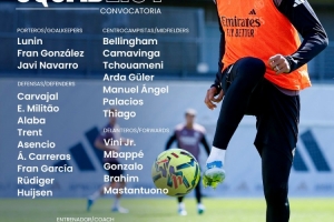 皇马联赛大名单:姆巴佩、维尼修斯领衔,米利唐回归,库瓦伤缺