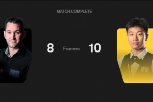 第一阶段过后汤姆·福德6-3领先高阳,第二阶段高阳连胜反超比分,最终10-8逆转战胜对手晋级。