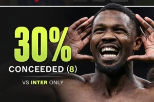 科莫本赛季意甲总计丢掉26球,其中8球来自对阵国米的比赛,占比约30%。