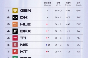 体育资讯4月20日讯 外网分享2025LCK第三周和2026LCK第三周战队排行的对比,只有HLE仍在前三。