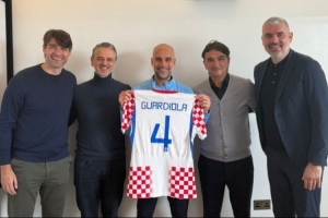 随达利奇一同造访曼彻斯特的还有技术总监普莱蒂科萨以及教练组成员乔尔卢卡、卢卡·米兰诺维奇,代表团向瓜迪奥拉赠送了一件其专属的克罗地亚国家队4号球衣以及一副定制的国际象棋。